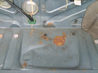 20 augustus 2010. Roestvorming achter de anti roest kit. En niet een klein beetje. Hier had ik het echt niet verwacht.