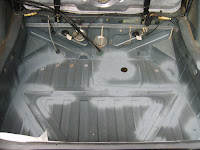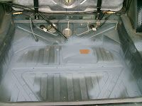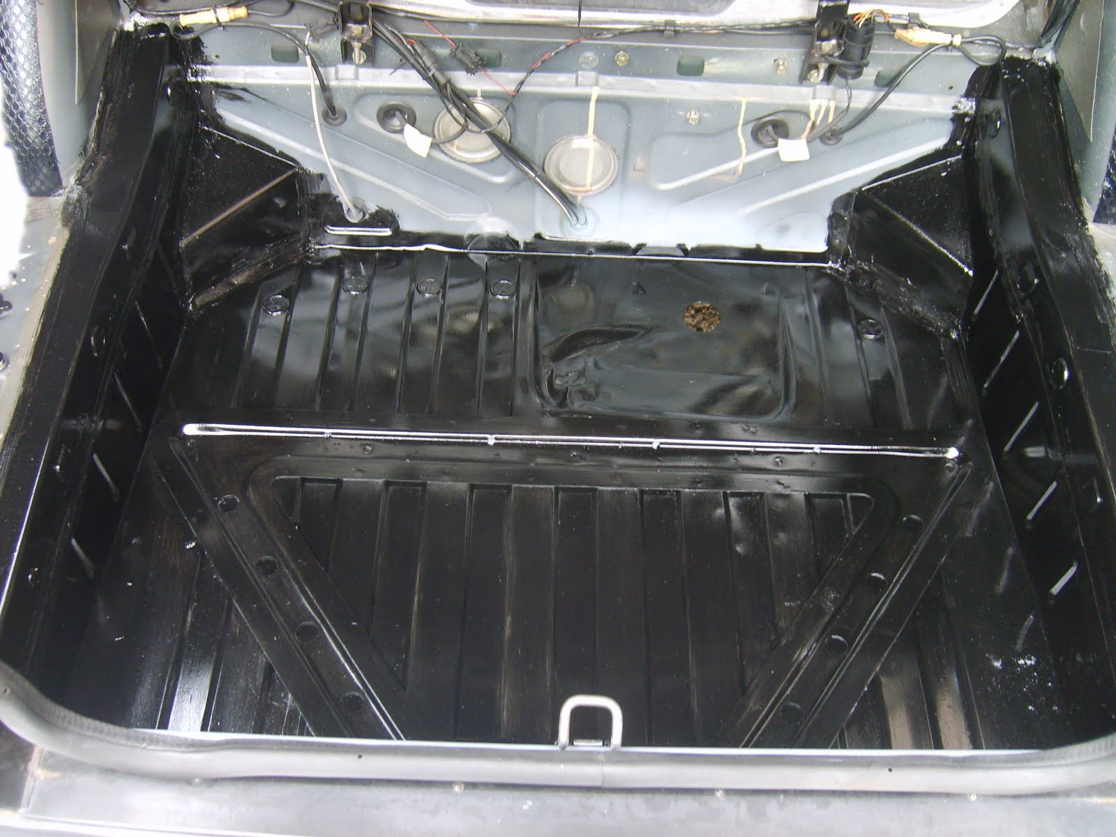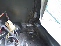29 augustus 2010. Controle van de bodemplaat binnen. Niets op aan te merken. Geen roest. Ik heb de bodemplaat voorzien van een mooie zwarte roestwerende verflaag.
