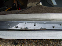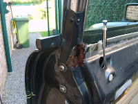 25 augustus 2010. In mijn blog van 6 augustus ging ik er nog van uit dat aan de deuren geen roest te bekennen was. Niets in minder waar!!! Een van de toplocaties aan de XJ40 voor roestvorming zijn de deurramen. Na het verwijderen van de rubber kom ik tot de ontdekking dat hier werk aan de winkel is.