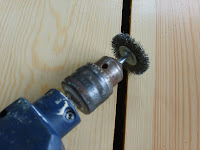 Tijd om de grote middelen bij te halen. Zandstraler pistool en stalen borstel op boormachine. Persoonlijk ben ik niet zo te vinden voor roestomvormers.