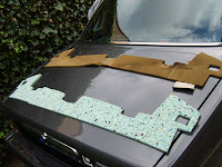 Binnen onder de achterzetels, voorzetels en hoedenplank komt, bovenop de originele dempingsmatten een trillingsisolerend en geluidsabsorberend schuimplaat op basis van gebonden polyurethaanschuimvlokken.