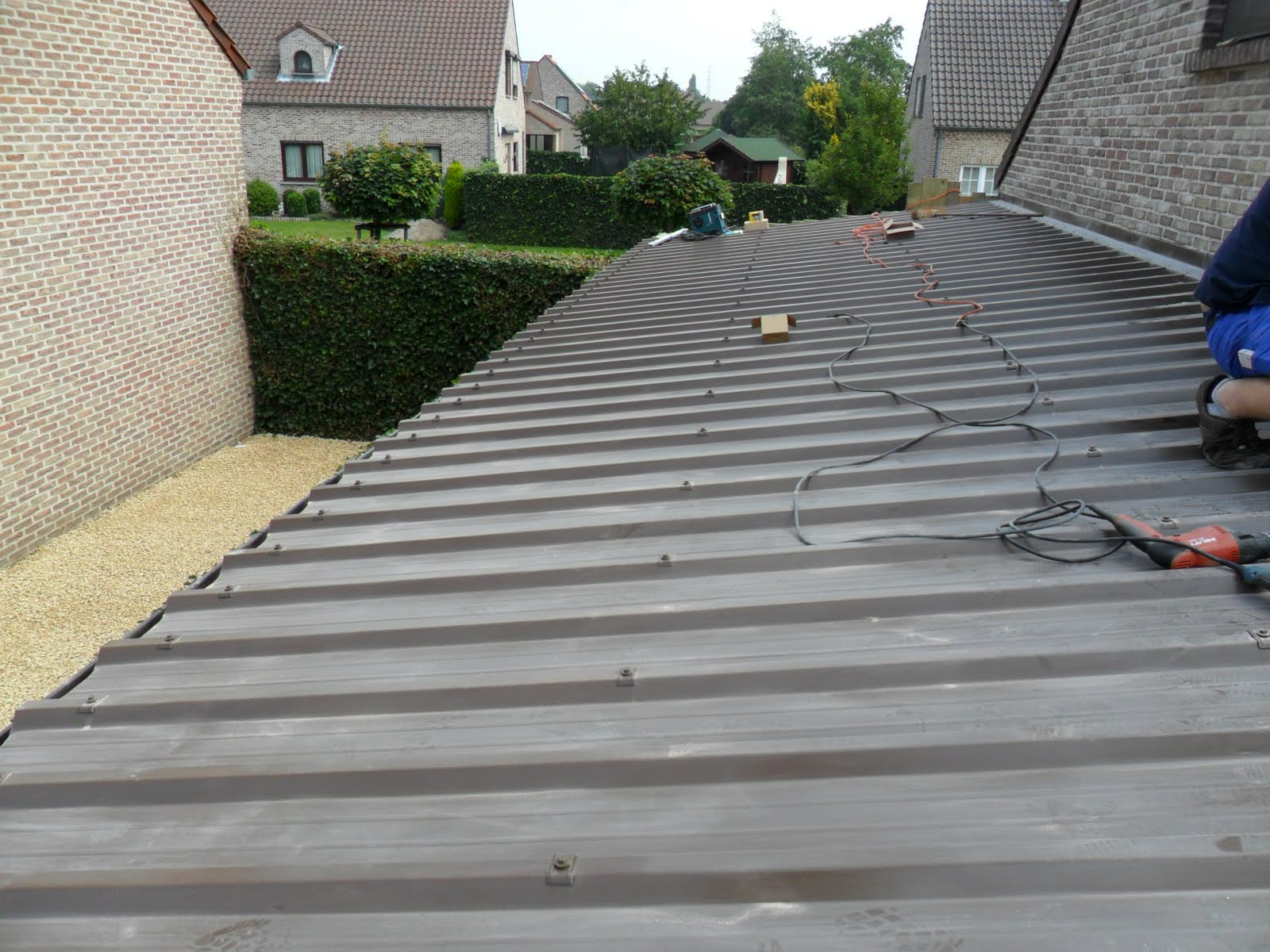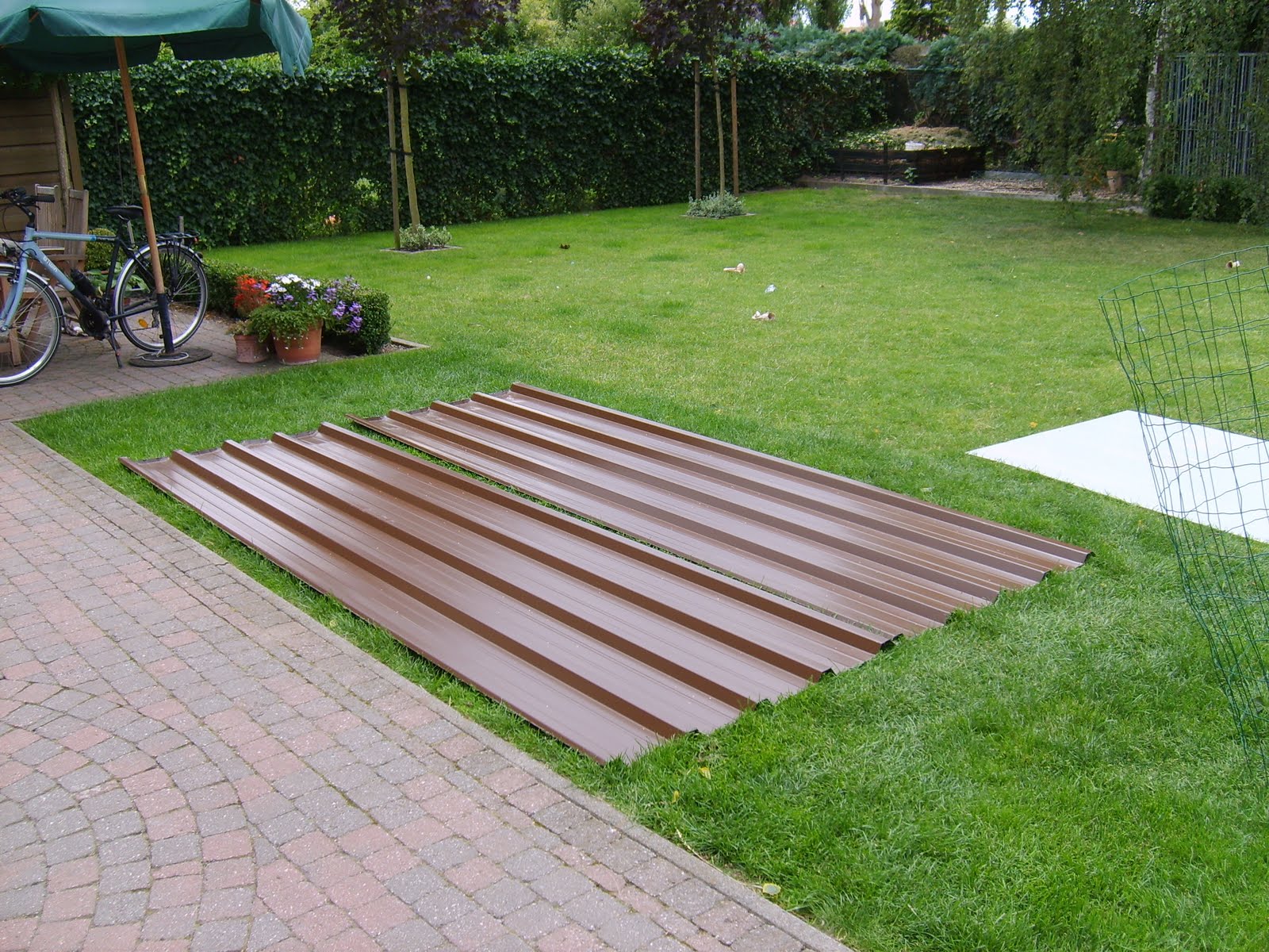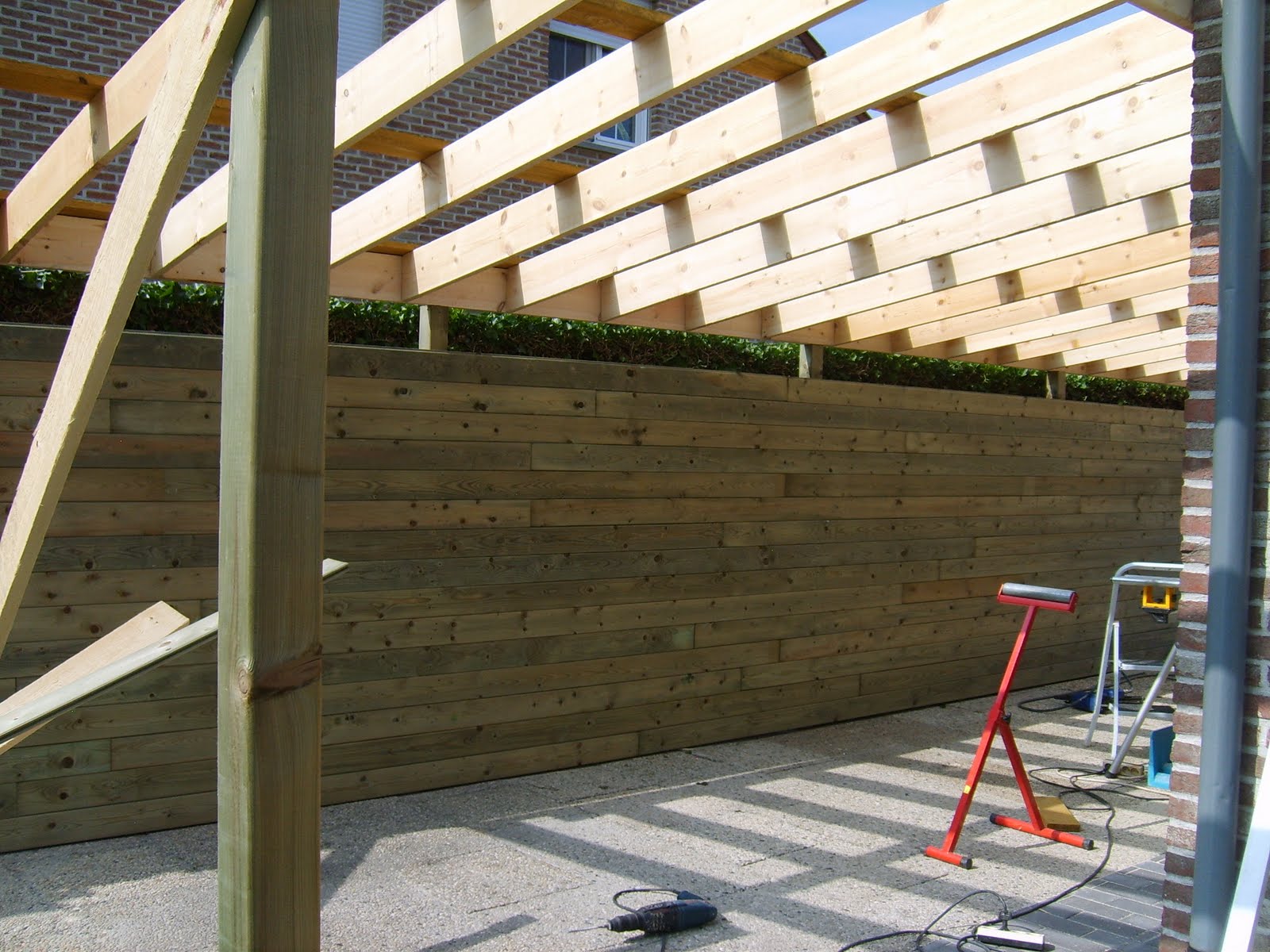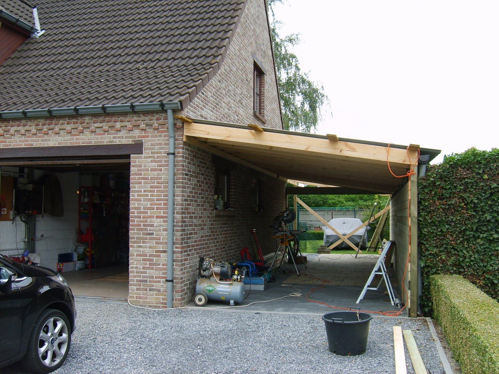 Aan beide koppen komt er nog een stevige poort met groot slot en voldoende verlichting. Heb zo een idee van minimum tien TL lampen van 30 watt. Gedaan met het sleuren met verlengsnoeren en draaglampen.
