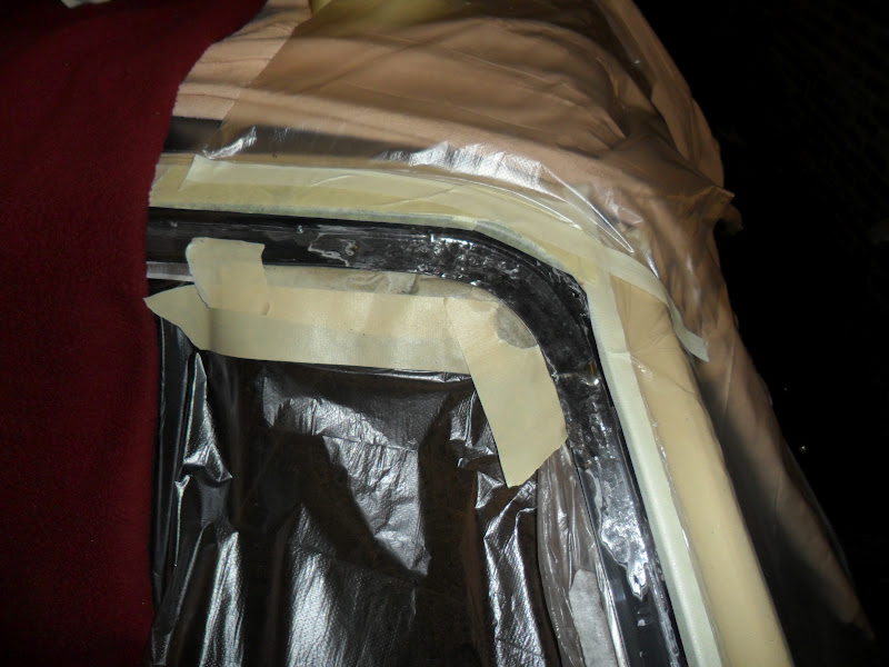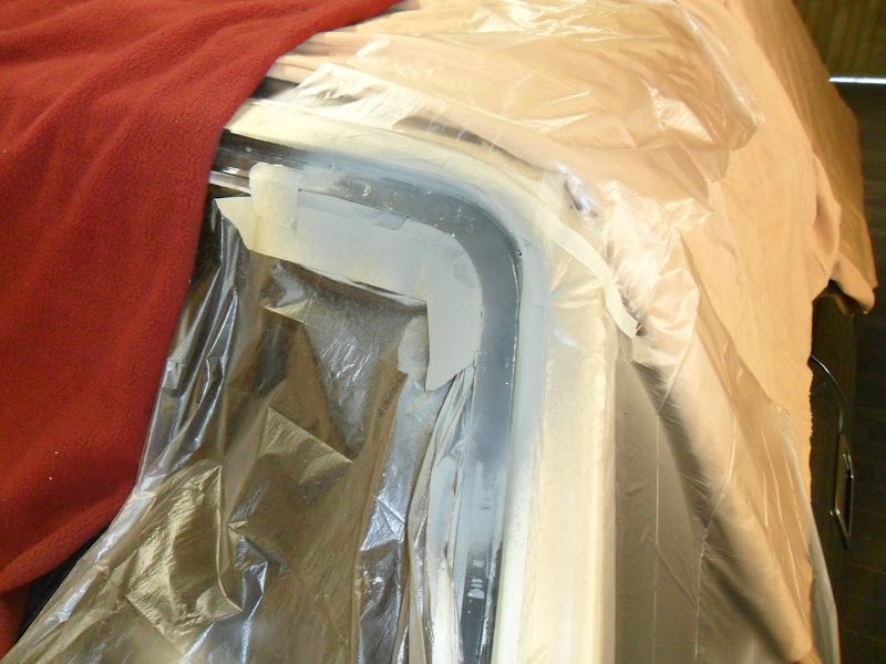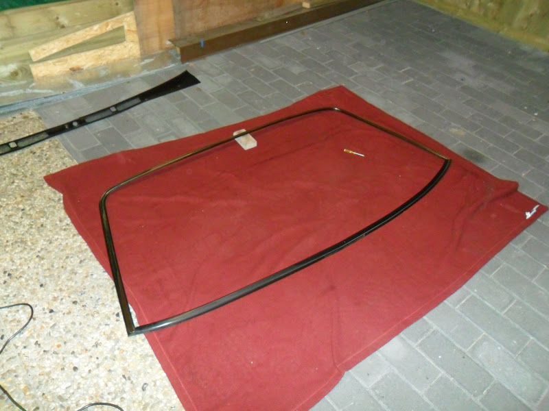 Bij het verwijderen van de rubber rondom de ruit kwam ik tot de vaststelling dat de flens behoorlijk rood is door roest. Dus eerst de ruit uitsnijden (wat overigens goed meeviel) en de roest verwijderen en het blanke metaal behandelen met anti roestmiddelen.